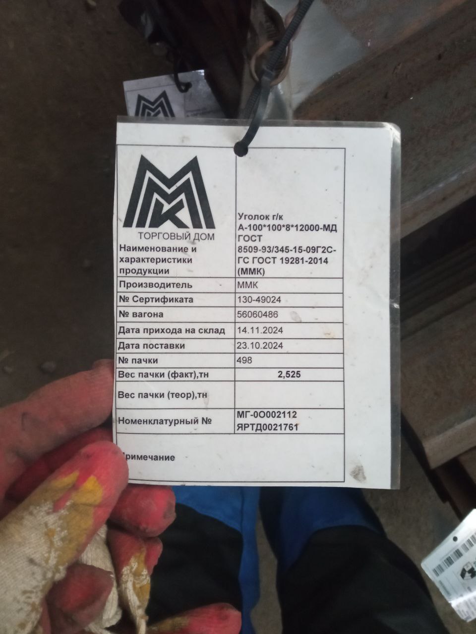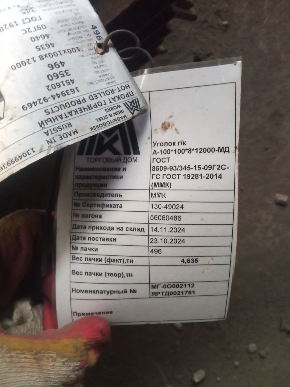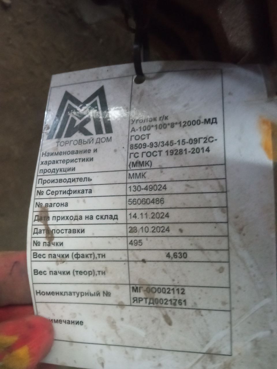 Уголок г/к ГОСТ 19281-2014,ГОСТ 8509-93 (100-09Г2С) А-100*100*8*12000-МД ГОСТ 8509-93/345-15-09Г2С-ГС ГОСТ 19281-2014 (ММК)