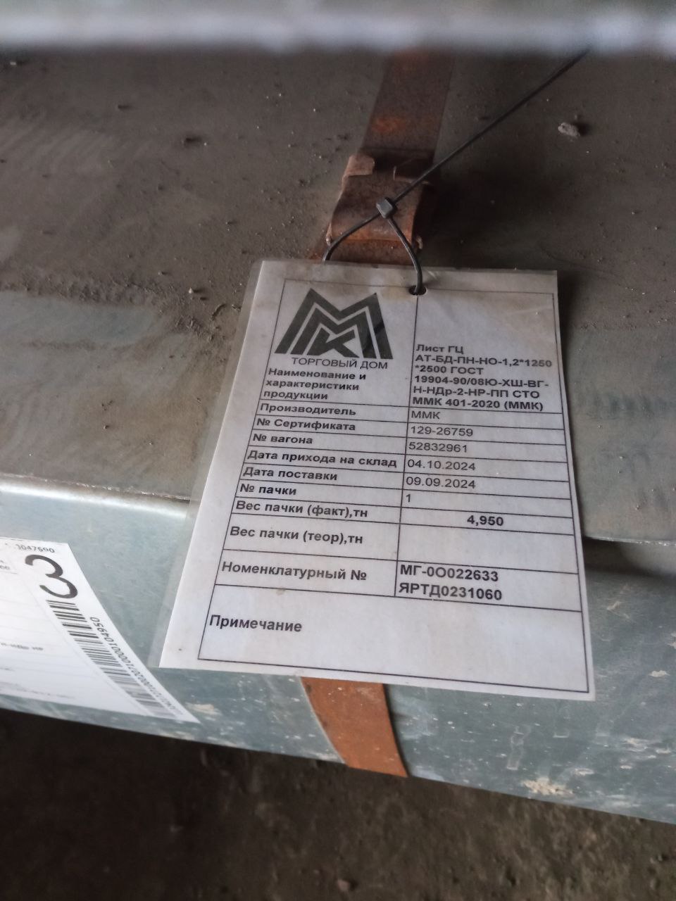 Лист ГЦ СТО ММК 401-2020,ГОСТ 9045-93,ГОСТ 19904-90 (1,5-2-1200) АТ-БД-ПН-НО-1,5*1250*2500 ГОСТ 19904-90/08Ю-ХШ-ВГ-Н-НДр-2-НР-ПП СТО ММК 401-2020 (ММК)
