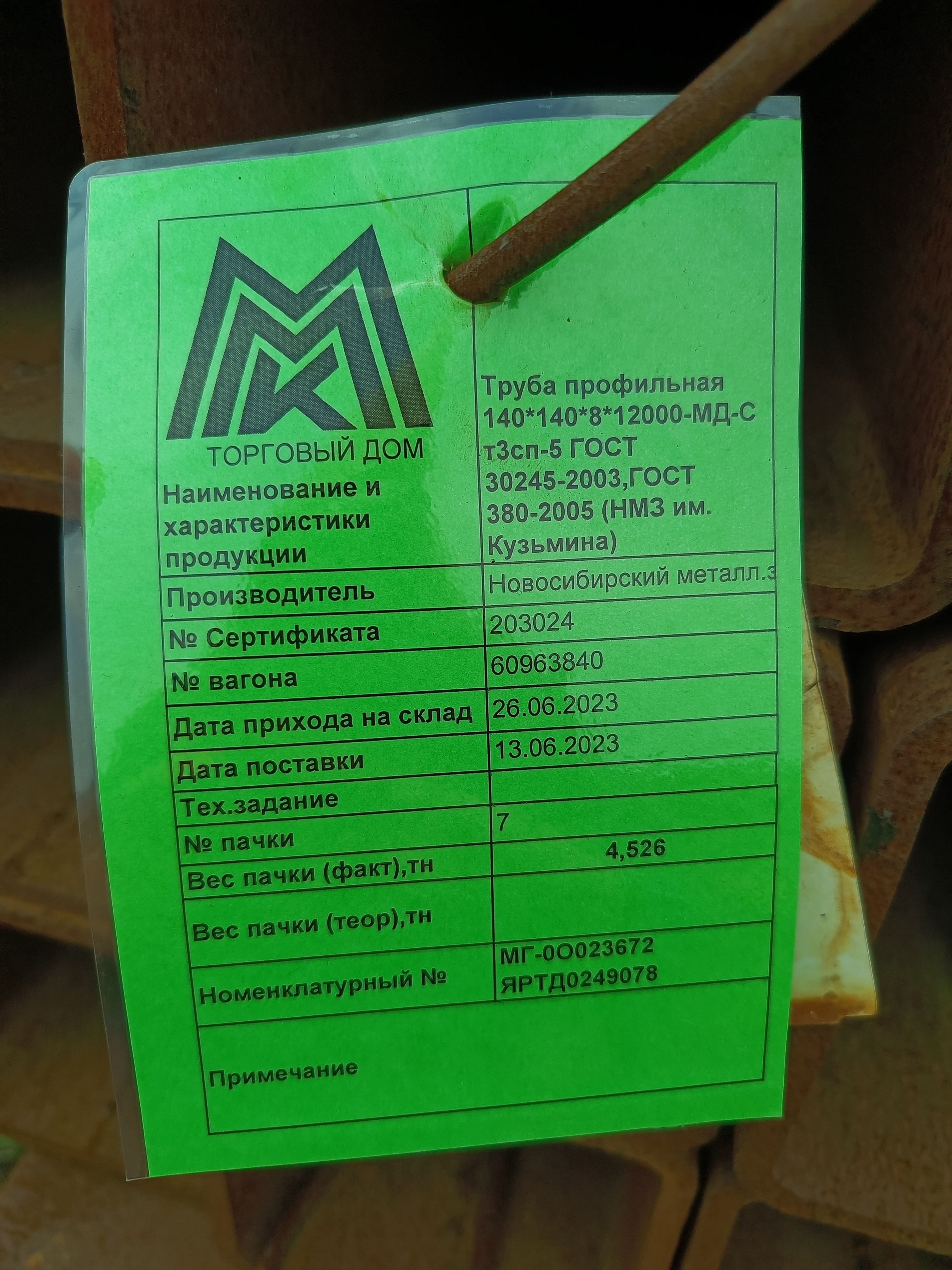 Труба профильная ГОСТ 30245-2003,ГОСТ 380-2005 (140-140-8) 140*140*8*12000-МД-Ст3сп-5 ГОСТ 30245-2003,ГОСТ 380-2005 (НМЗ им. Кузьмина)