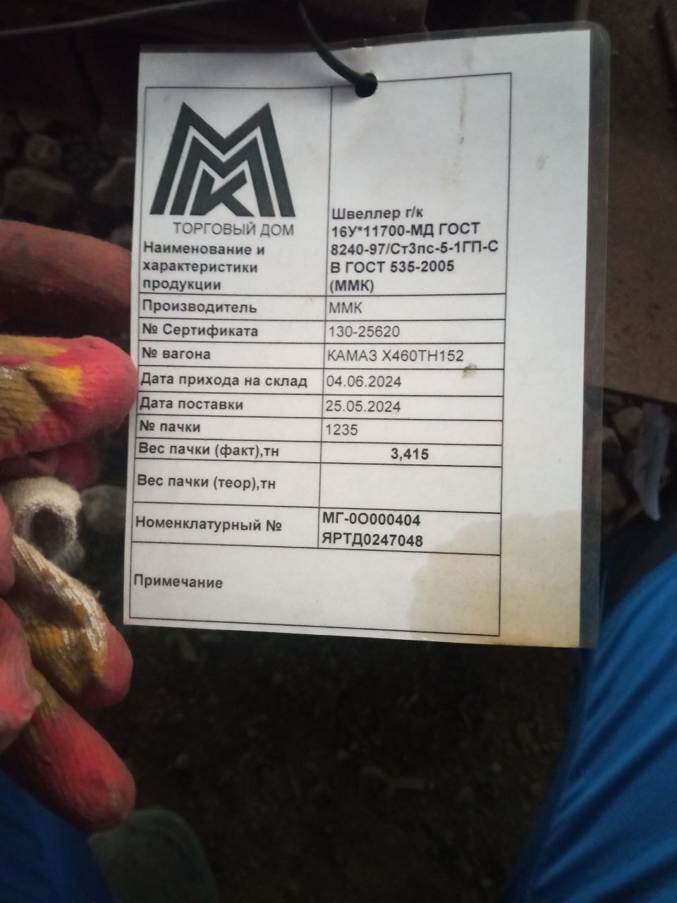Швеллер г/к ГОСТ 535-2005,ГОСТ 8240-97 (16У) 16У*11700-МД ГОСТ 8240-97/Ст3пс-5-1ГП-СВ ГОСТ 535-2005 (ММК)